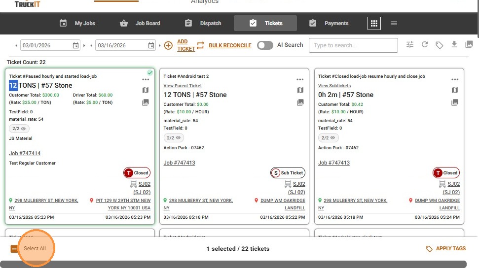 4. Press Ctrl and click on a ticket to select it. You can select one by one, or click "Select All."