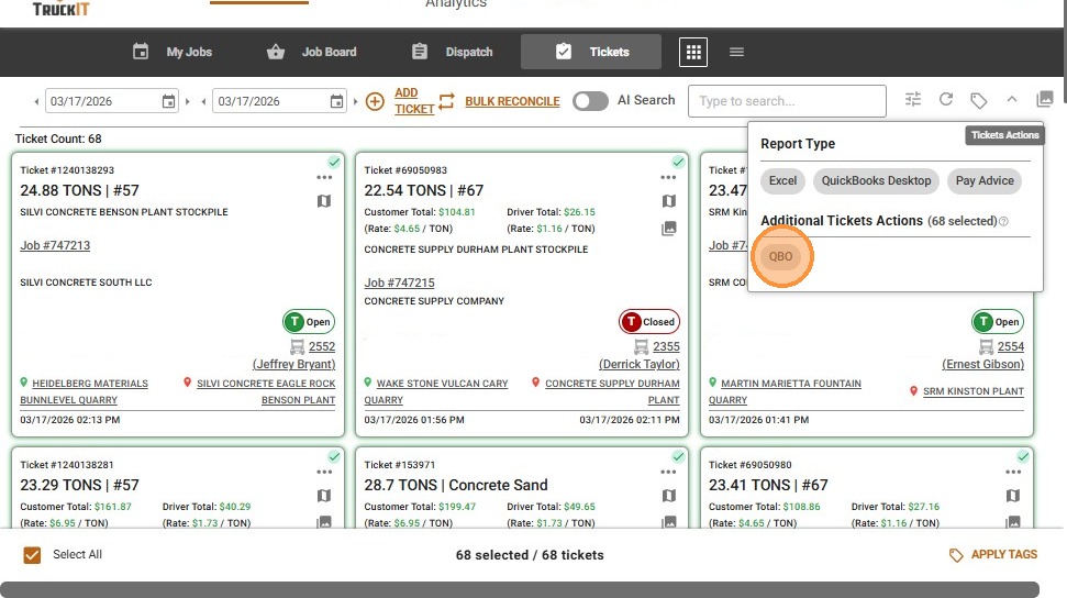 Learn how to efficiently export your TruckIT tickets to QuickBooks Online. This guide will walk you through selecting all tickets and initiating the export process for seamless accounting integration.